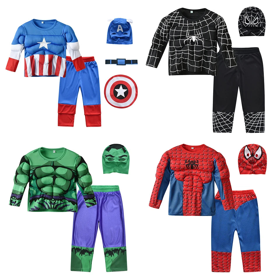 Marvel Heroic Cosplay Costume Sets – Spider-Man, Hulk, Captain America Outfits for Kids