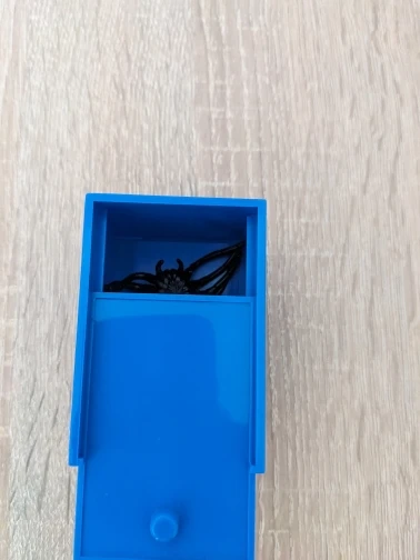 Add a spooky twist to your Halloween fun with this handcrafted spider prank box! Slide the lid open and surprise your friends with a realistic rubber spider — a hilarious and harmless trick for parties, pranks, and gag gifts.