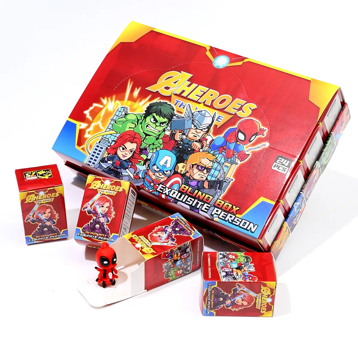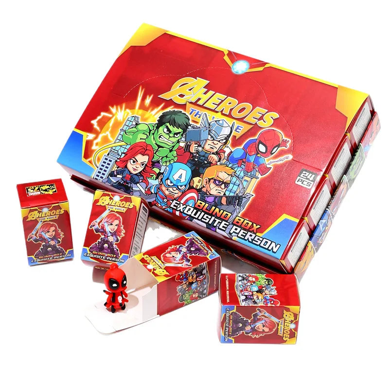 Includes 24 blind box figures with popular Marvel characters like Spider-Man, Iron Man, Hulk, and more