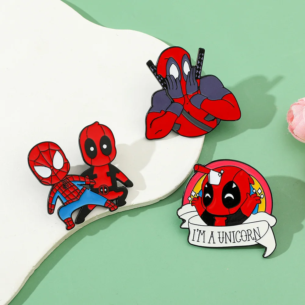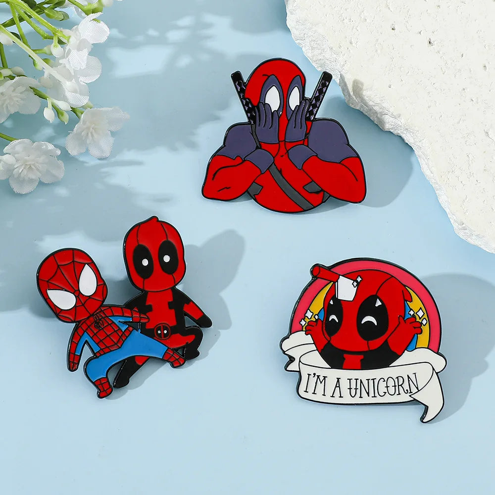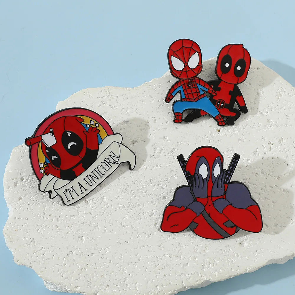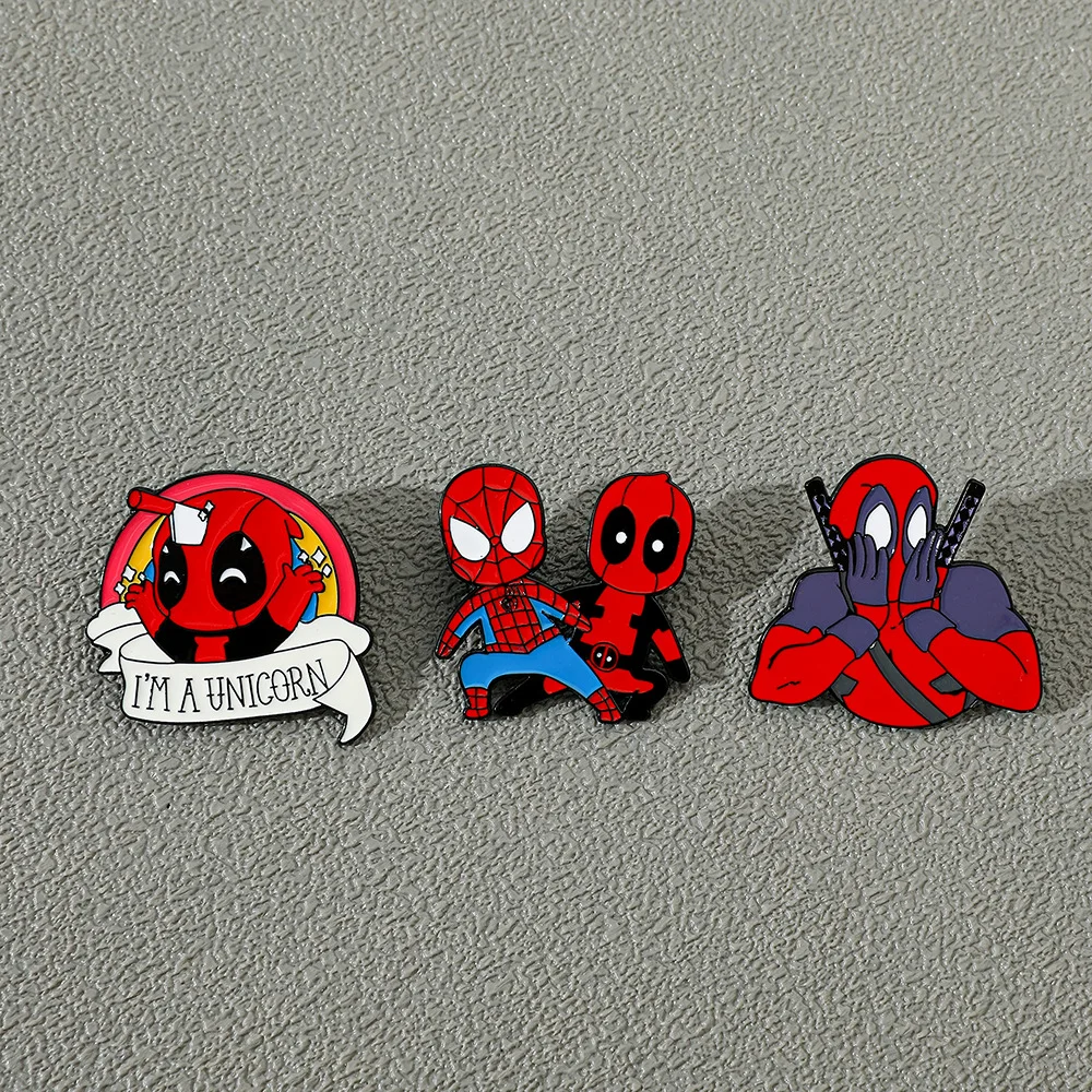 Marvel Kawaii Superhero Enamel Pins Set – Deadpool, Wolverine & Spider-Man Lapel Badges for Fans