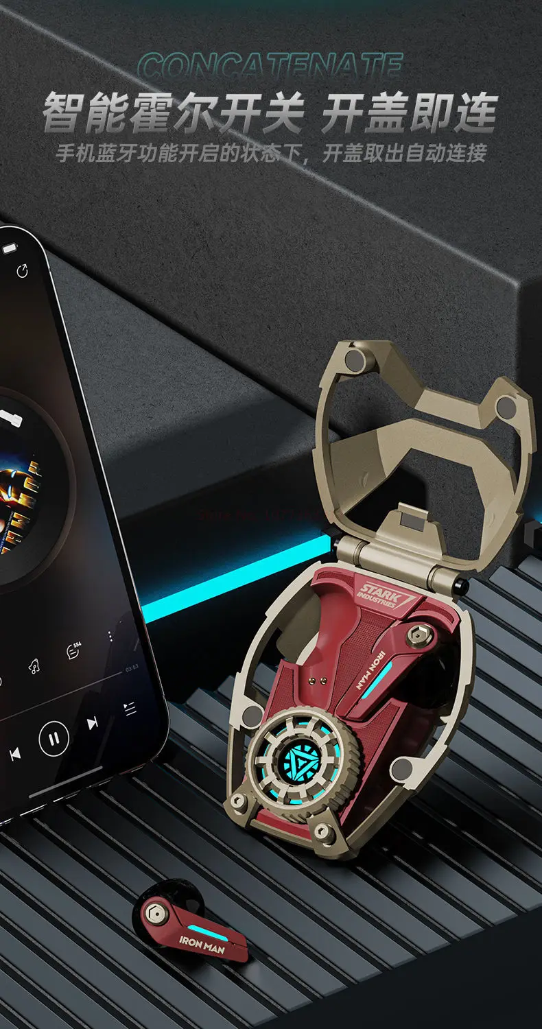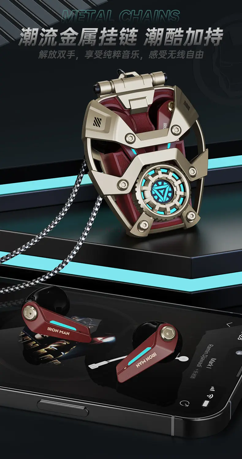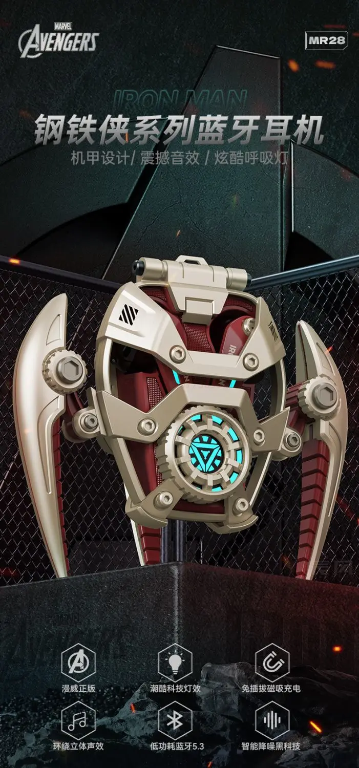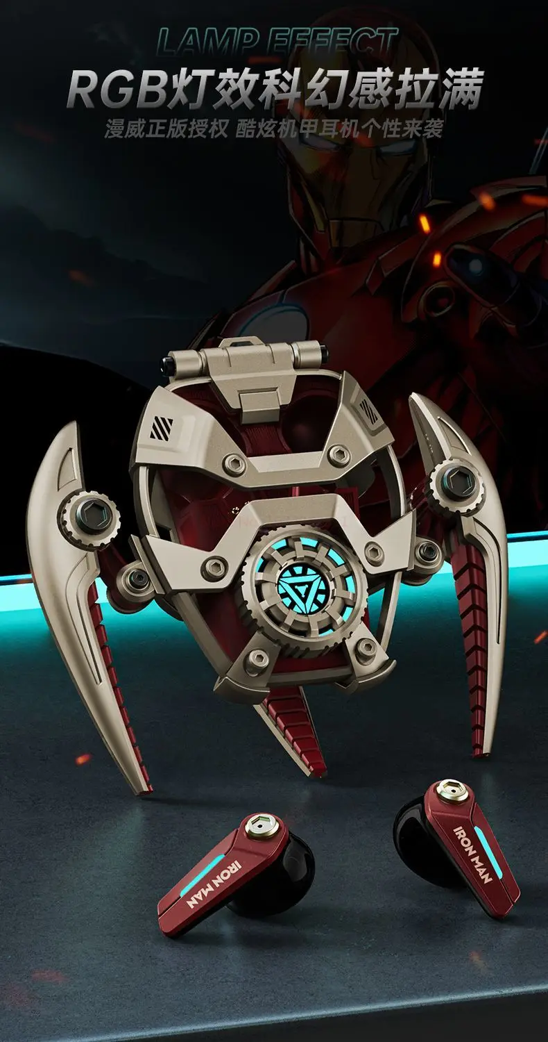 Original Marvel Iron Man Wireless Bluetooth Earbuds – MR28 Mecha Design with Cool RGB Lights