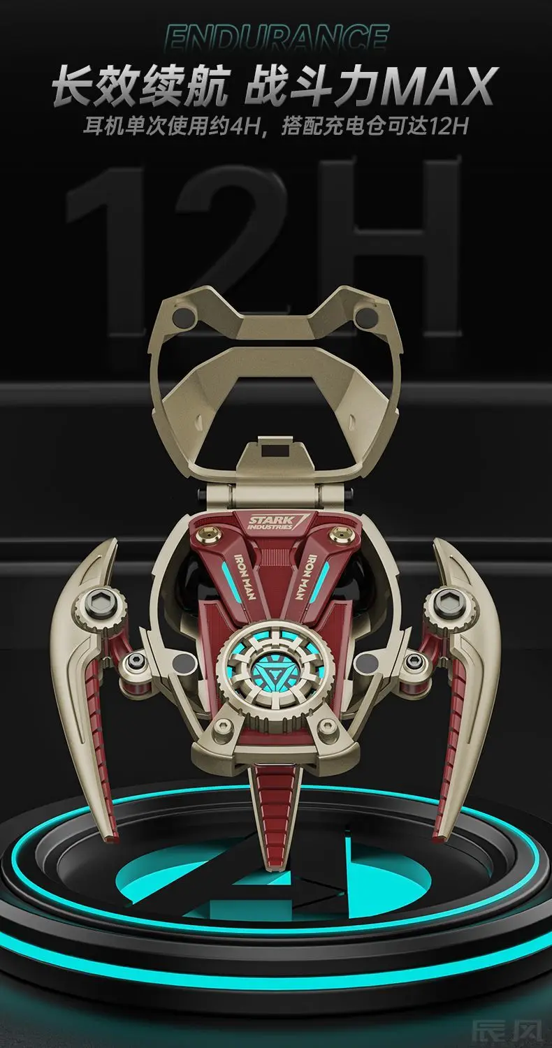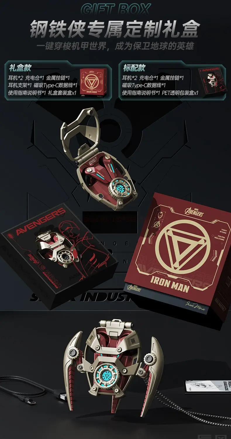 Officially licensed Marvel Iron Man design with mech-style charging case