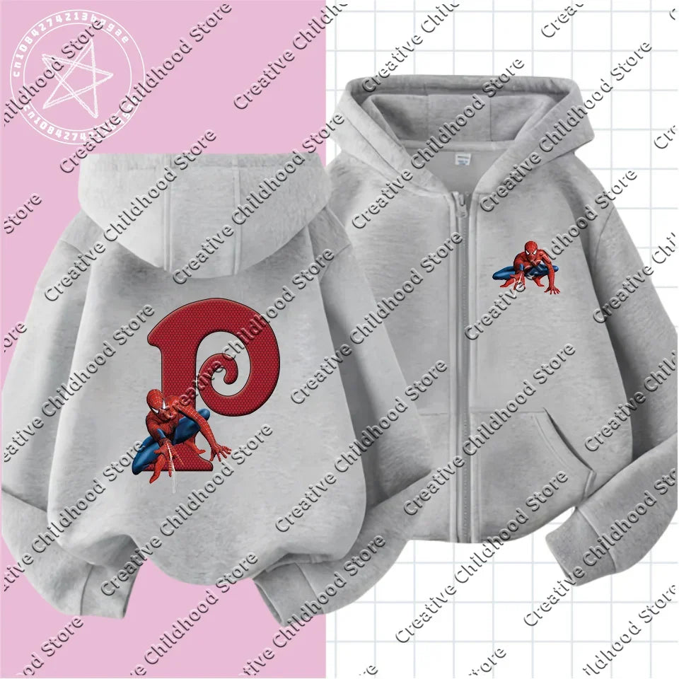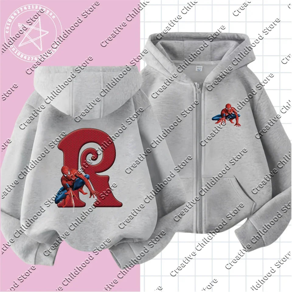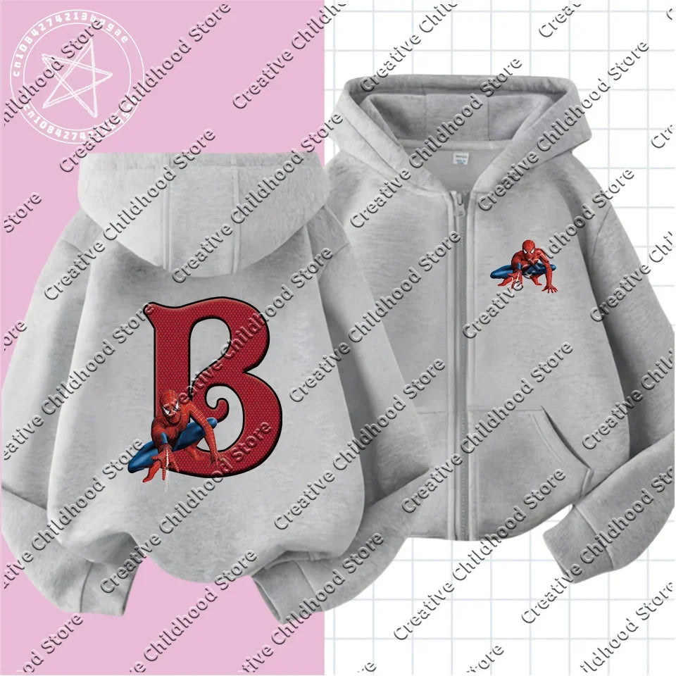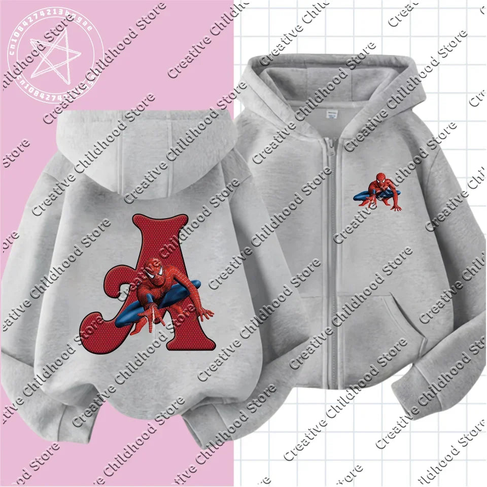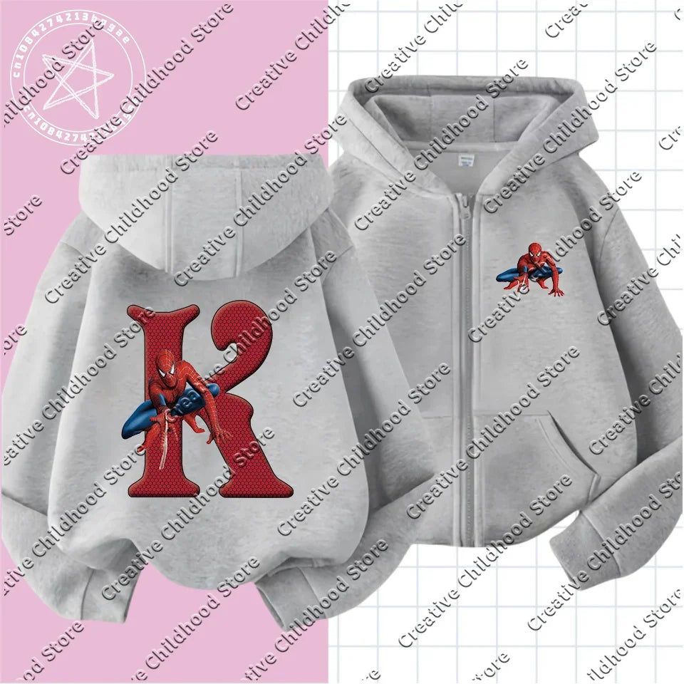 Marvel Spider-Man A–Z Letter Zipper Hoodie – Cute Cartoon Pullover for Kids & Toddlers