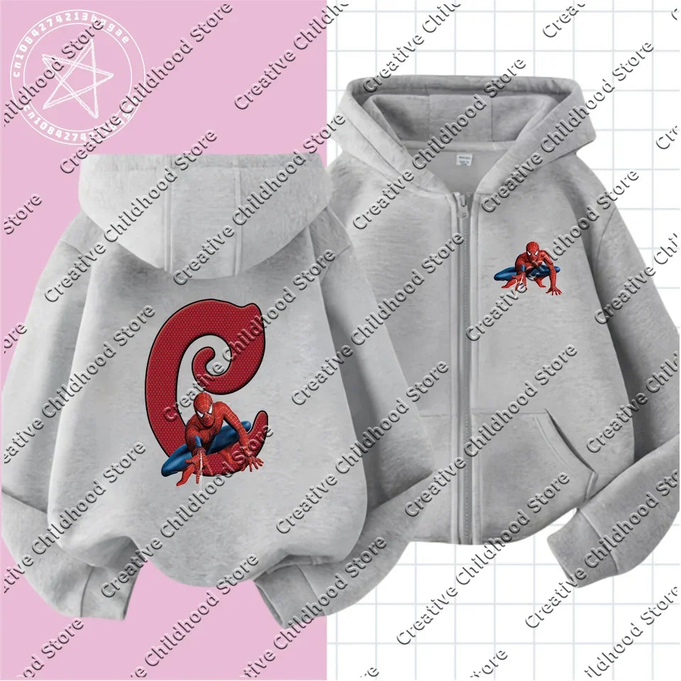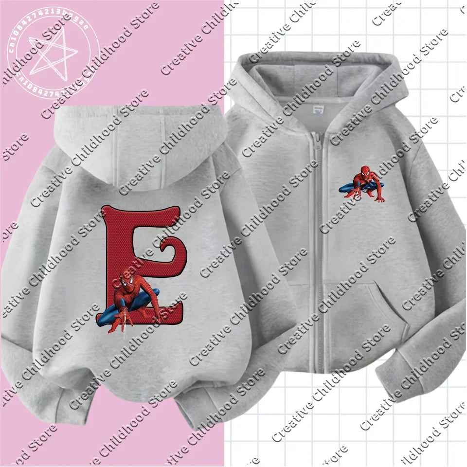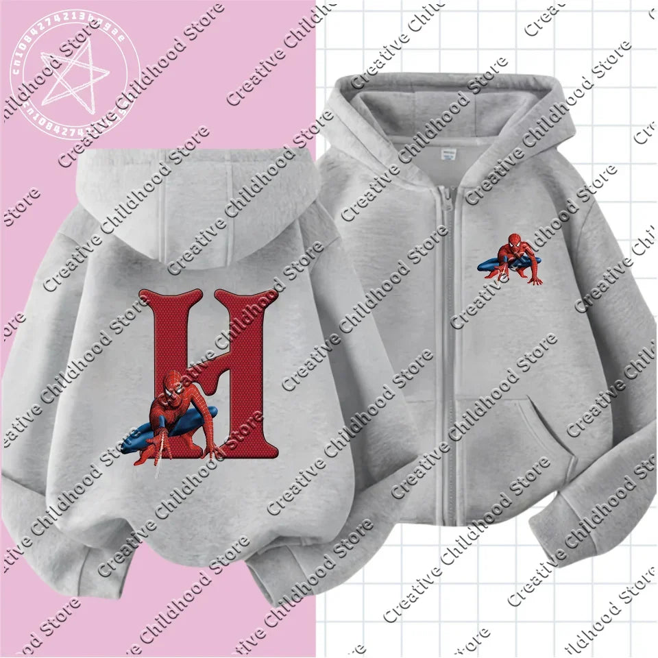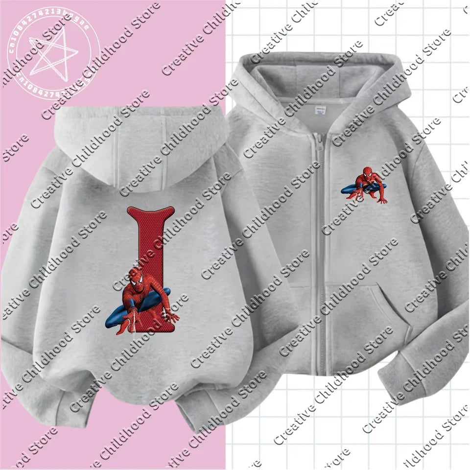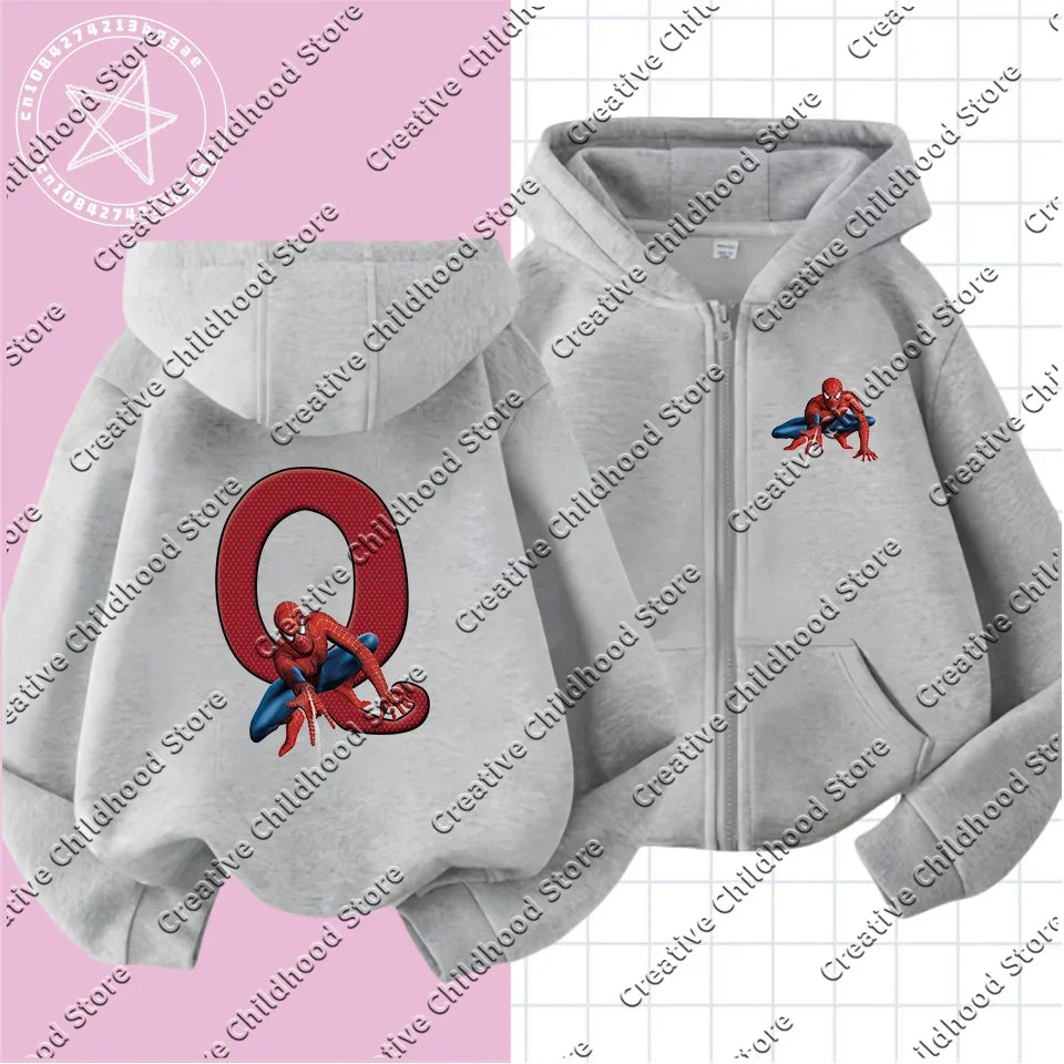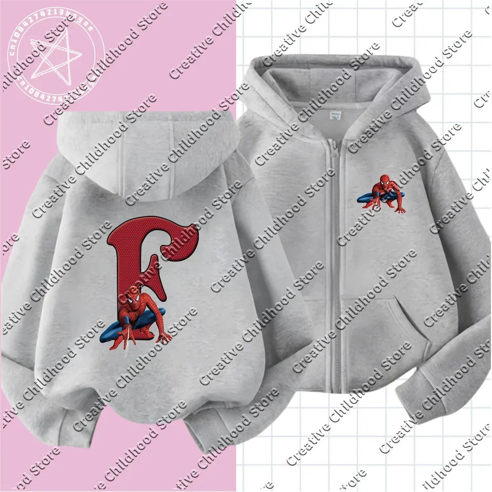 Marvel Spider-Man A–Z Letter Zipper Hoodie – Cute Cartoon Pullover for Kids & Toddlers
