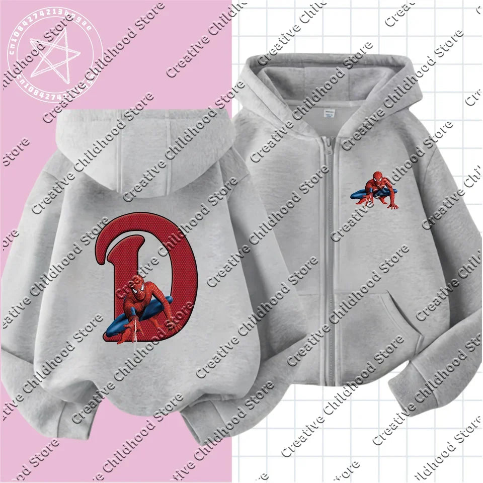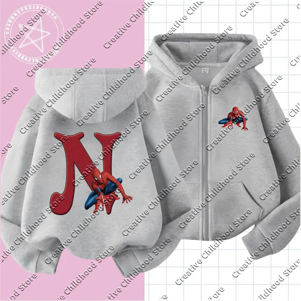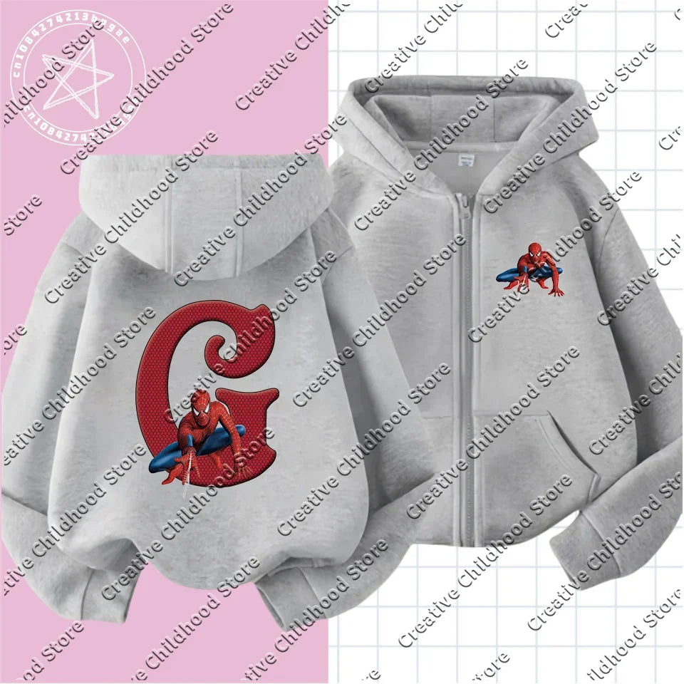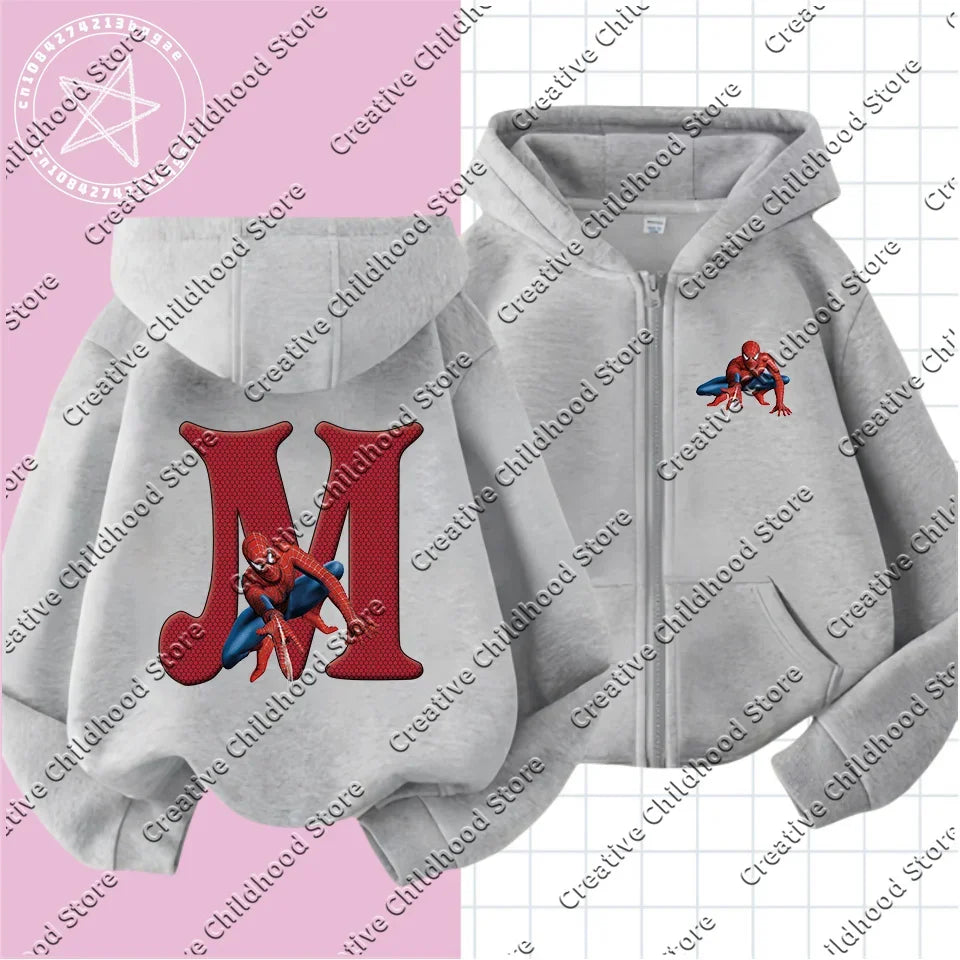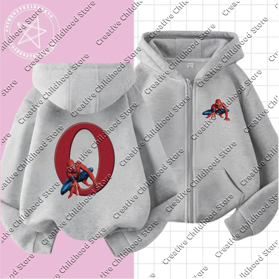 Marvel Spider-Man A–Z Letter Zipper Hoodie – Cute Cartoon Pullover for Kids & Toddlers