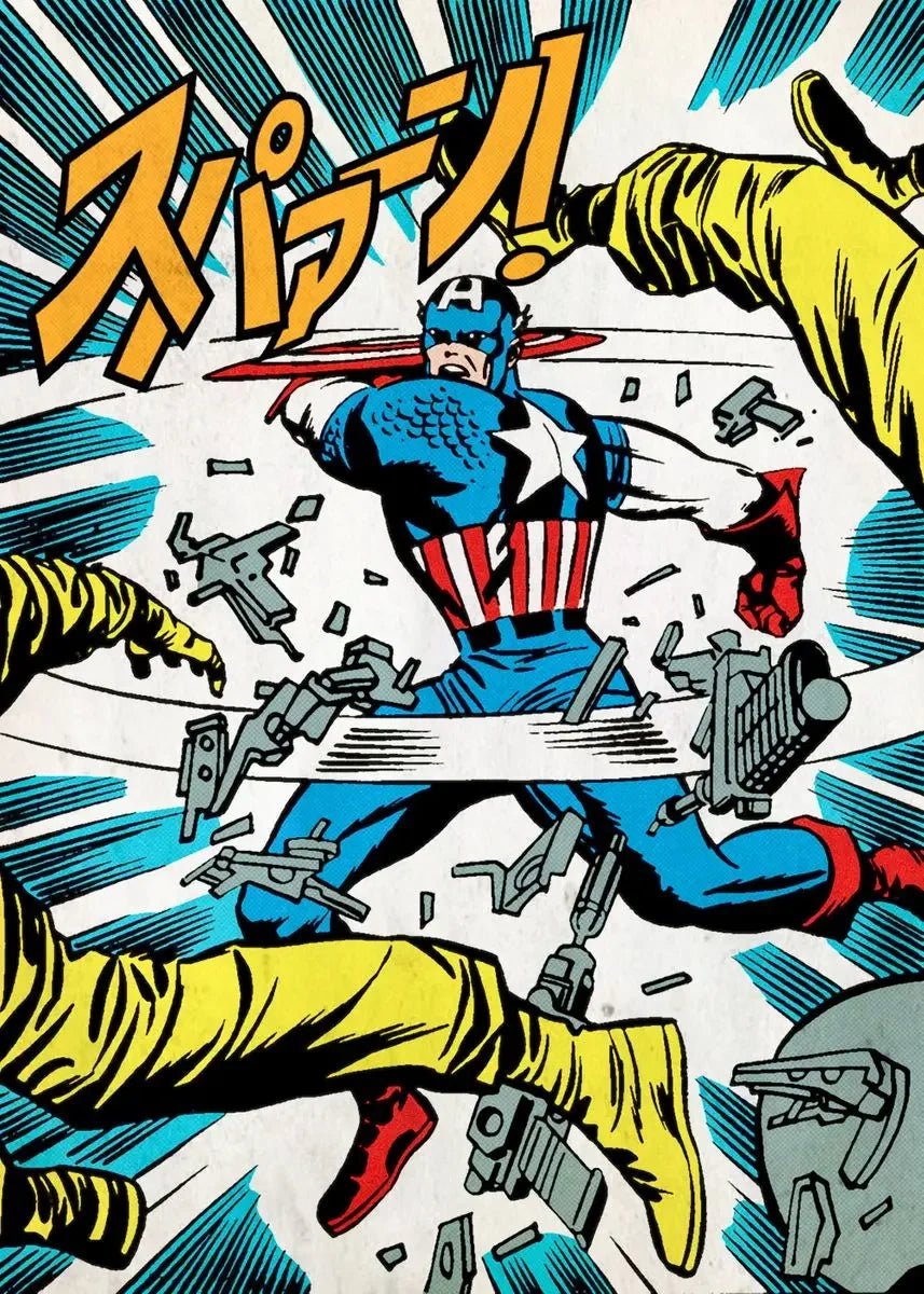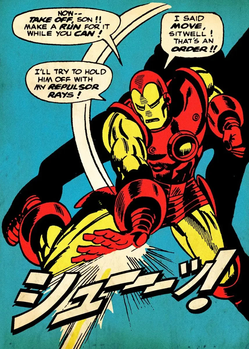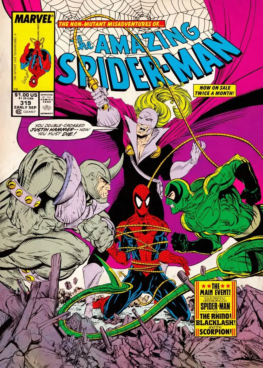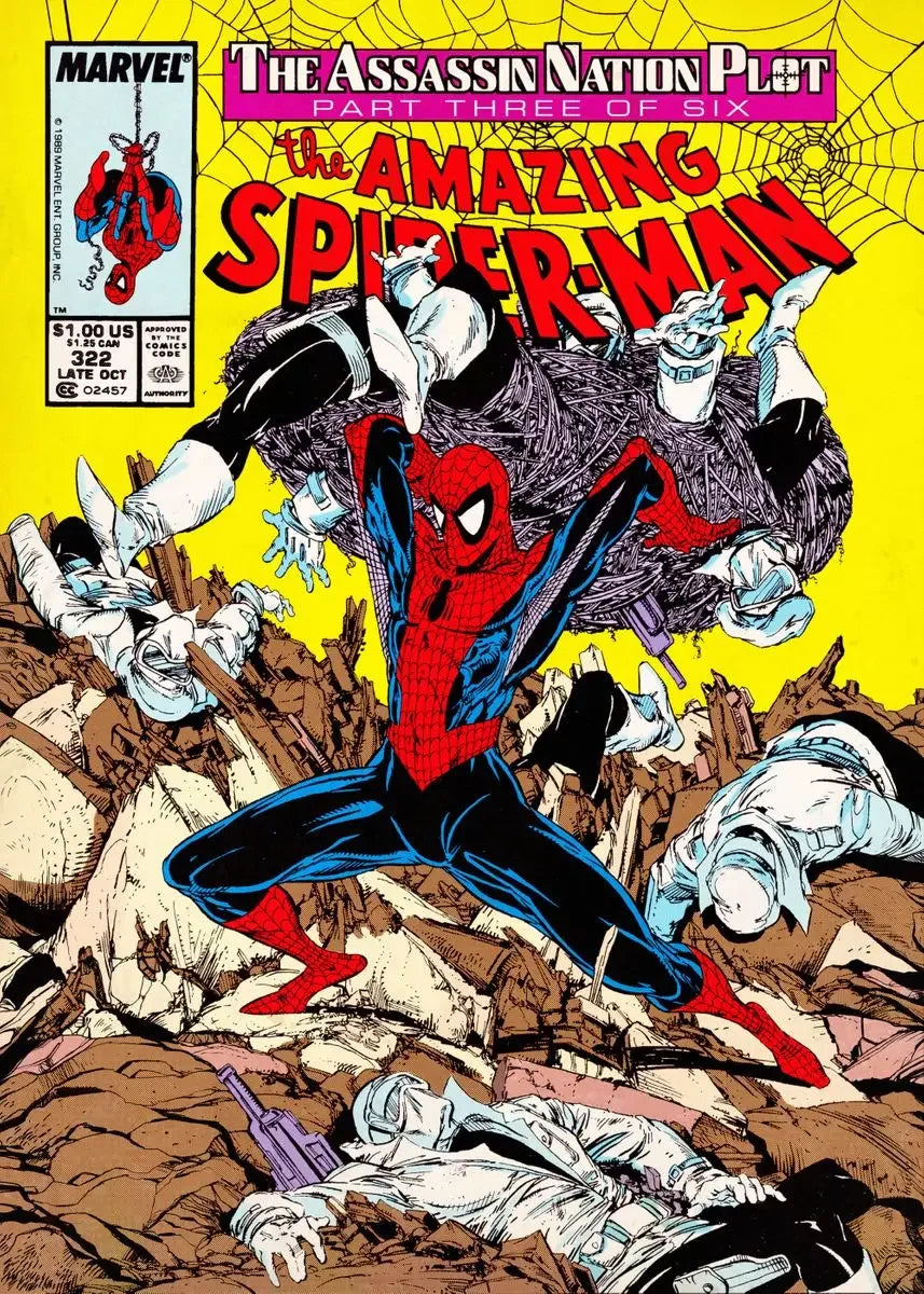 Showcases Spider-Man in colorful comic book style from Marvel’s classic Avengers universe