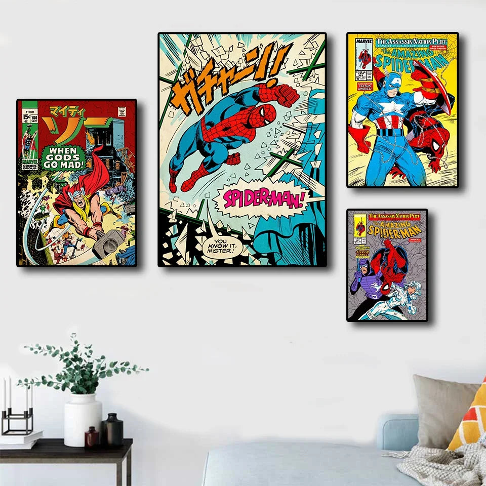 MINISO Marvel Avengers Spider-Man Comic Canvas Poster – Kids’ Room Wall Art Print