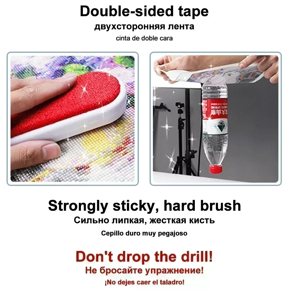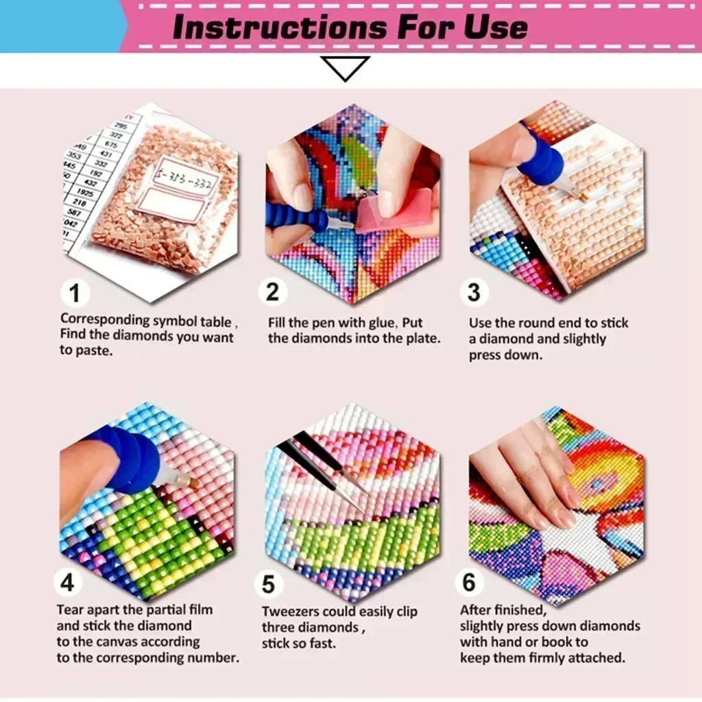 Premium adhesive canvas with high-quality resin diamonds and full-color printed guide.
