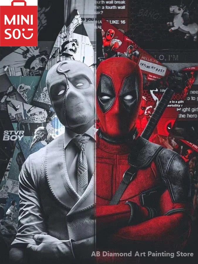 MINISO Marvel Deadpool Diamond Painting – Full Round/Square Mosaic Wall Art for Home & Coffee Decor