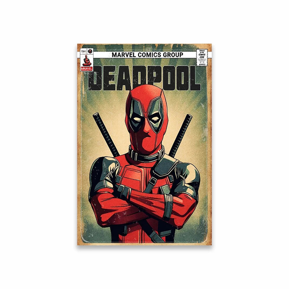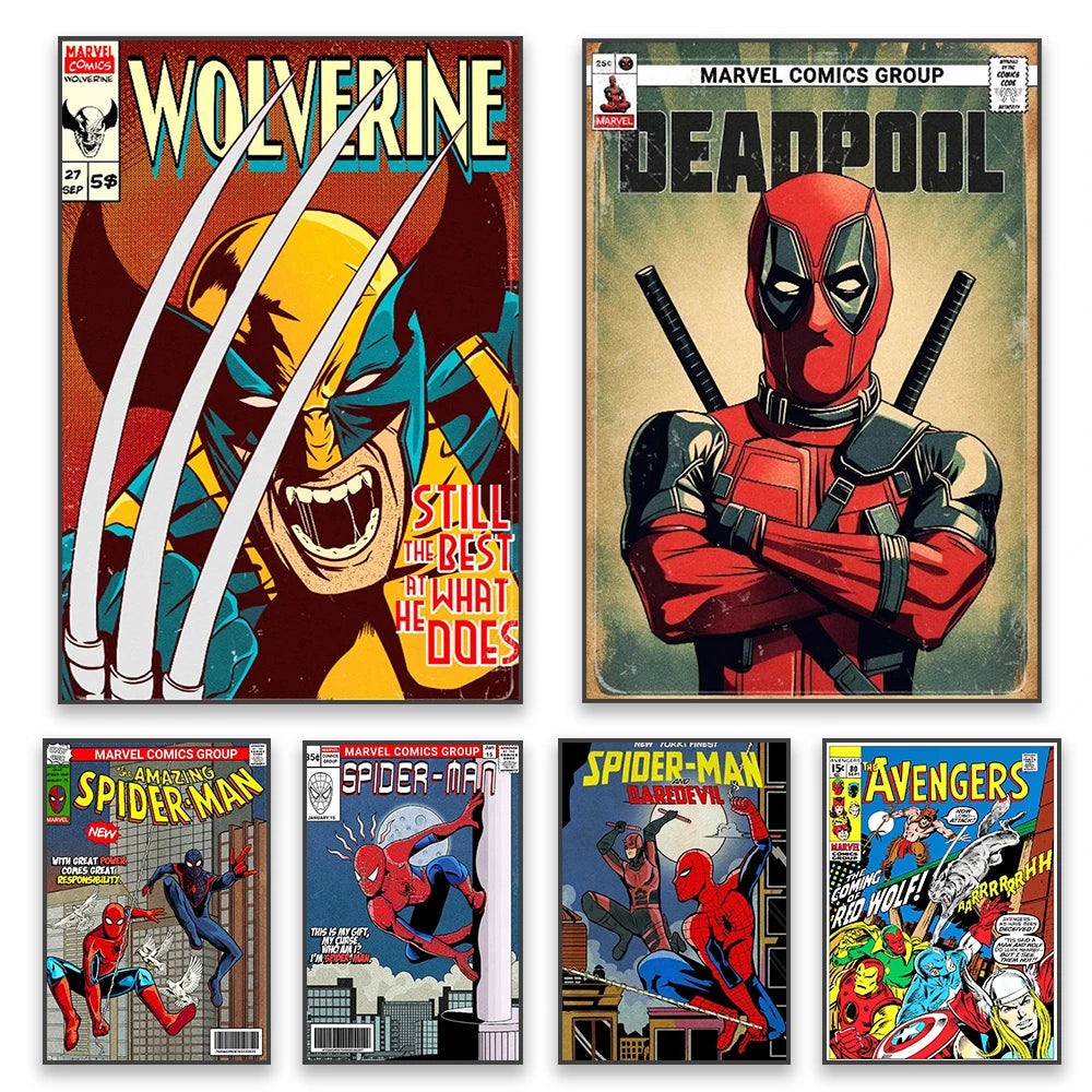 Vintage Marvel Superhero Poster – Wolverine, Deadpool & Avengers Canvas Art