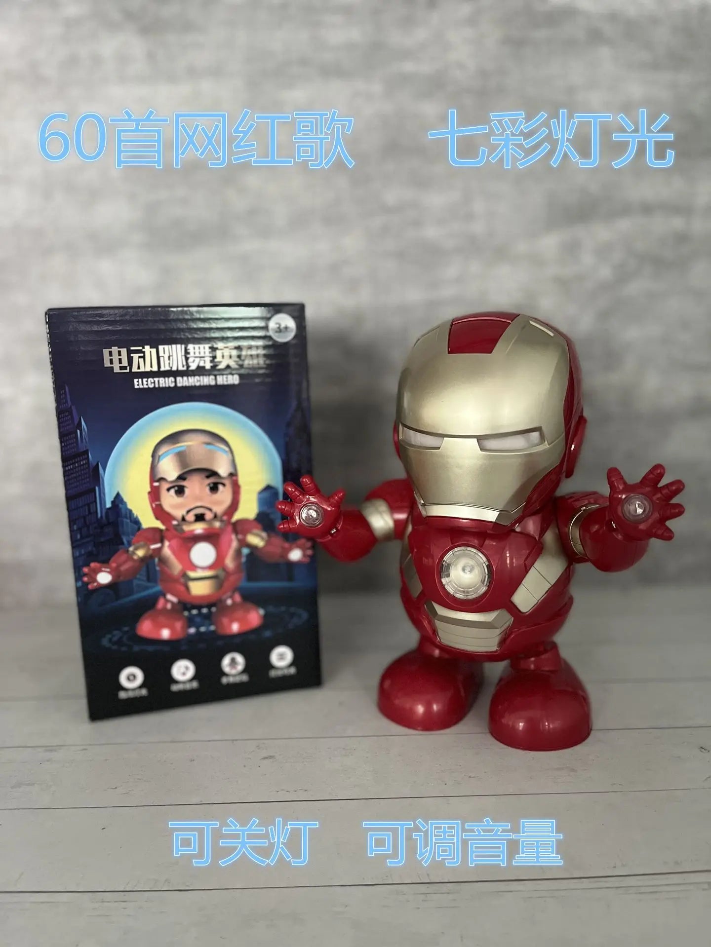 Interactive dancing Iron Man robot with built-in music and sound