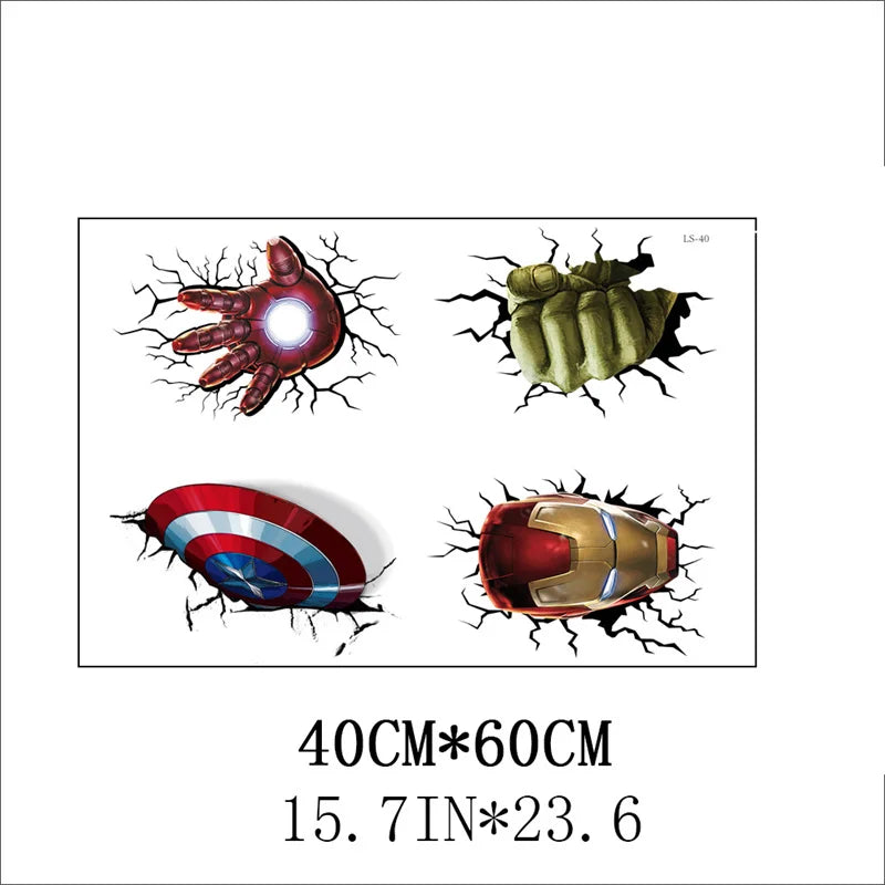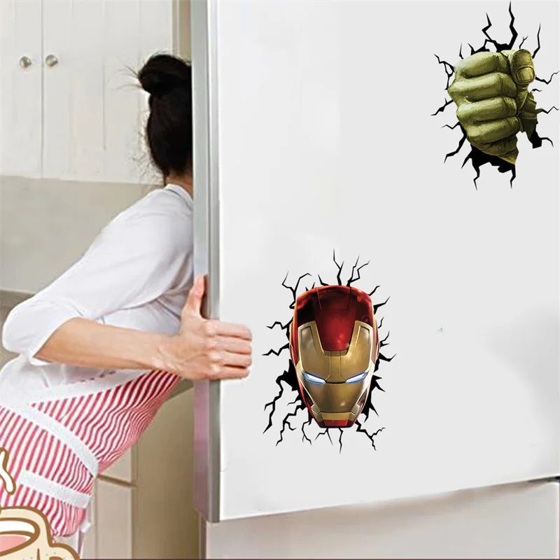 Cartoon Broken Avenger Wall Stickers – 3D Superhero Mural for Kids Room