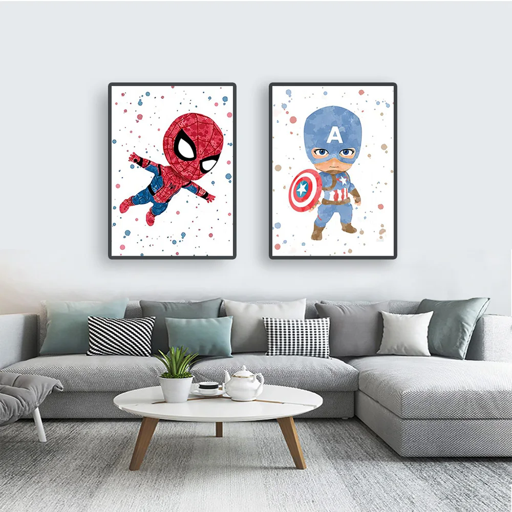 MINISO Marvel Iron Man & Spider-Man Canvas Poster – Superhero Wall Art for Kids' Rooms